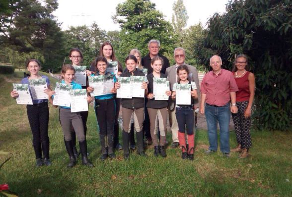 Strahlende Gesichter bei der Übergabe der Urkunden beim Reitabzeichenlehrgang auf der Anlage des Reitclubs Mosbach